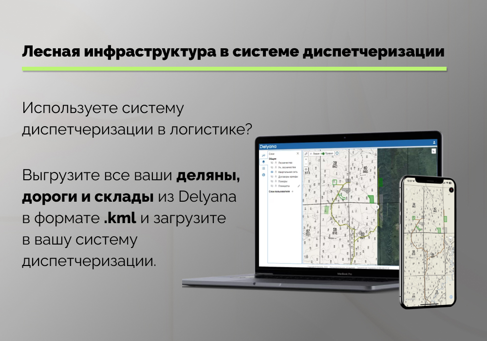 Инфраструктуру на карте туда нужно каким-то образом вносить, причем регулярно, так она постоянно изменяется. Это ДОЛГО, НЕУДОБНО, и ОШИБКИ почти гарантированы. Однако, если вы уже используете программный комплекс для профессиональных лесопользователей Delyana, то это можно сделать за пару минут.